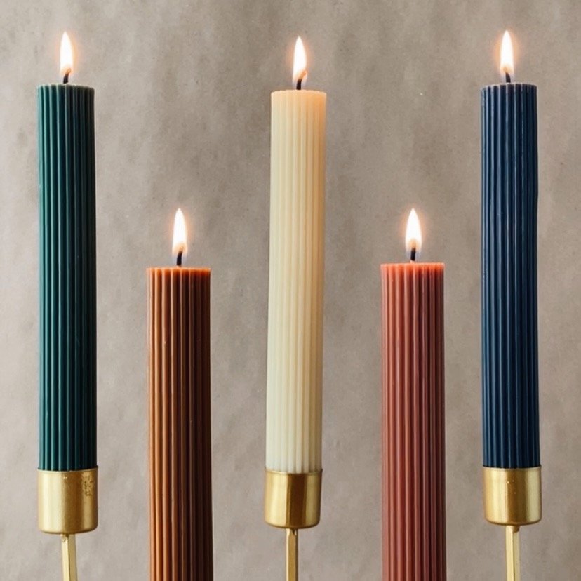 Crafted from high-quality beeswax, these tapers have unique design with striking, rigid edges that add a touch of elegance.